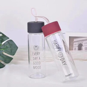 创意玻璃笑脸随手杯网红学生情侣杯手提式户外运动杯小...