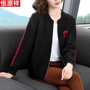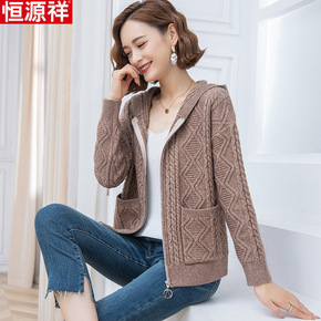 2021新款恒源祥毛衣外套女韩版外搭羊毛针织开衫短...