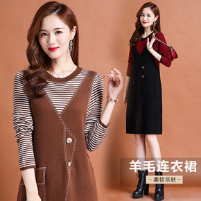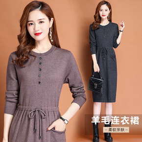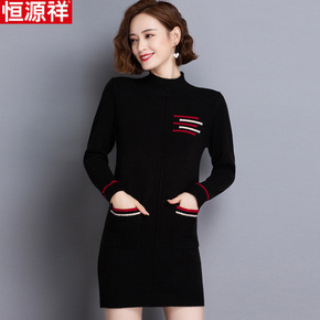 恒源祥秋冬装女装气质休闲大码纯色羊毛衫中长款毛衣连...