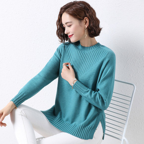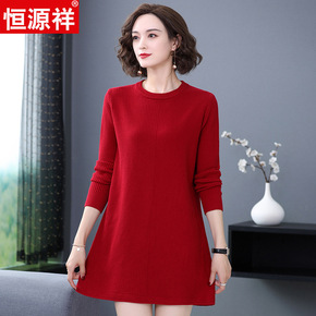 恒源祥羊毛衫女中长款2021年圆领套头宽松大码针织...