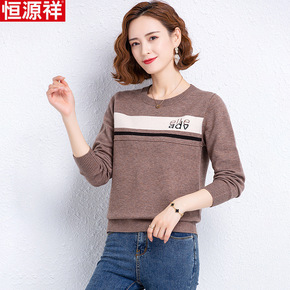 恒源祥羊毛衫女秋冬新款羊绒圆领针织衫宽松套头打底毛...