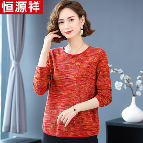 恒源祥年轻妈妈秋装韩版针织毛衣薄短款打底衫中老年女...