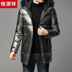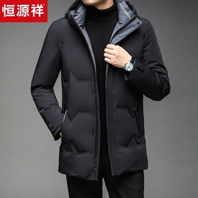 新品2021恒源祥连帽毛领羽绒服潮流休闲中年冬季立...