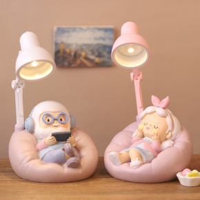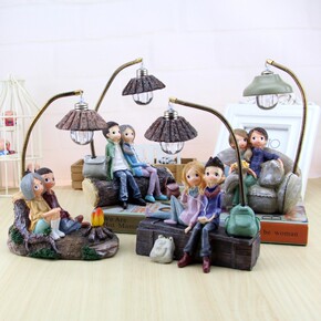 Zakka创意小灯摆件卡通情侣老头老太桌面装饰结婚...