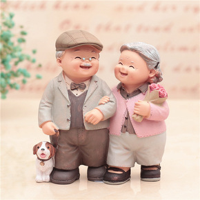 创意相守老头老太爱相伴散步小夜灯爷爷奶奶摆件结婚庆...
