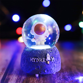 创意音乐盒飘雪带灯美人鱼姑娘水晶球摆件学生礼品工艺...