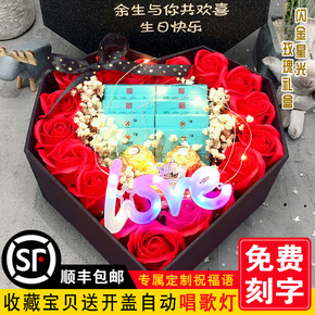 情人节放烟礼物盒心形炫煊赫门纪念日生日礼物送老公女...