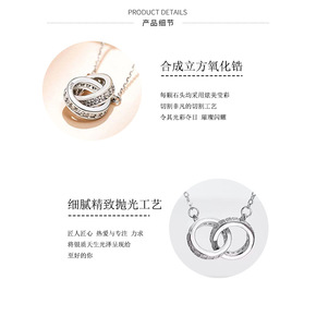 s925 银日韩时尚 双环吊坠项链女 时尚百搭项链...