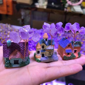 礼品摆饰树脂工艺少女 紫水晶不规则原石小房子 居家...