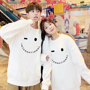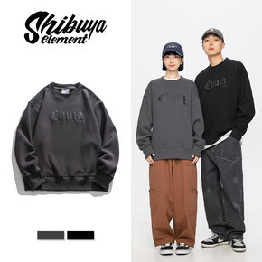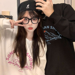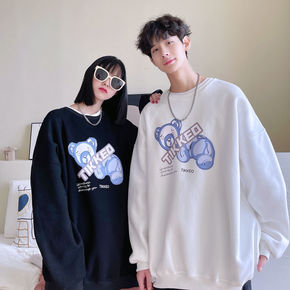 纯棉情侣卫衣2021新款港风简约加绒加厚宽松圆领长...