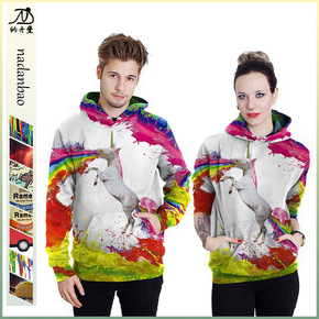 2022时尚热卖独角兽数码印花 速卖通货源带帽情侣...
