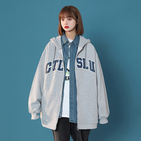 印制LOGO 2021厂家宽松休闲男女情侣款拉链开...