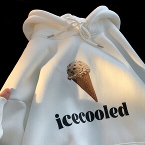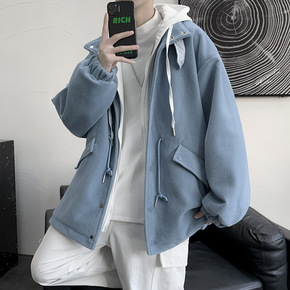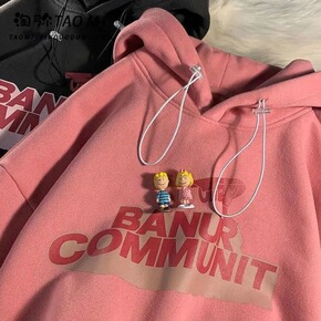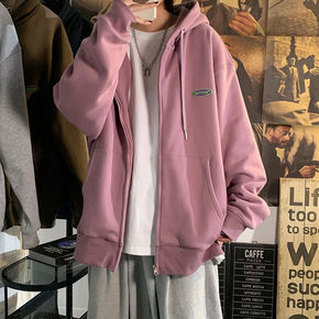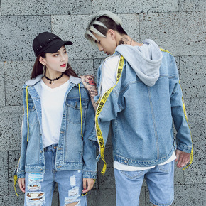 港风假两件外套男秋冬季情侣宽松连帽风衣bf韩版潮流...