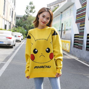 情侣装秋冬装2022新款韩版宽松皮卡丘毛衣圆领套头...