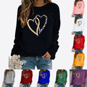 欧美独立站 情人节 爱心 love 印花无帽圆领卫...