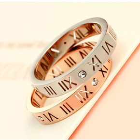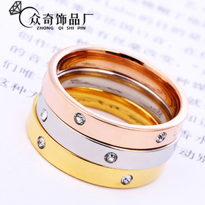 简约时尚情侣钛钢戒指女 韩版复古镶钻男士玫瑰金手饰...