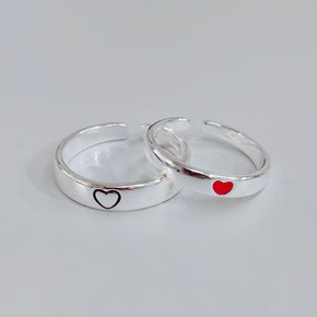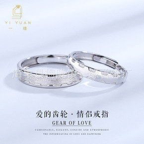 S925纯银爱的轮齿戒指一对学生男女情侣开口调节指...