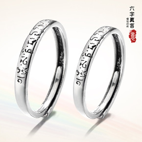 S925纯银戒指女轻奢情侣对戒开口可调节戒子银指环...