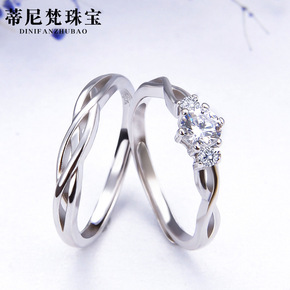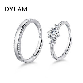 s925银情侣戒指 韩版仿真钻结婚对戒时尚开口男女...