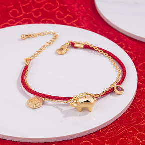 造型:动物/生肖 包装:独立包装 加工定制:是 风格:简约 种类:手链 颜色:金色小猪红绳手...