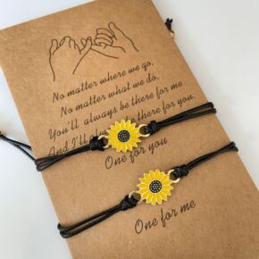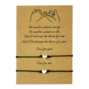 跨境饰品欧美创意爱心手链简约合金心形蜡线编织友谊卡...