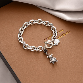 钛钢蝴蝶贝母手链女简约小众设计感情侣手镯复古港风气...