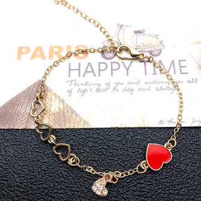 少女心简约甜美爱心草莓锆石学生森系闺蜜姐妹链情侣手...