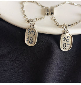 霸气小众纯银手链男潮个性复古转动珠六字真言手环情侣...