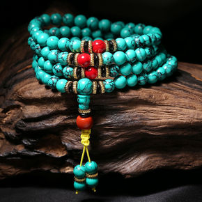 天然绿松石手链108颗高瓷蓝松石文玩佛珠手串圆珠配...