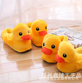 秋冬香港情侣大黄鸭拖鞋可爱毛绒小黄鸭公仔家居包跟棉...
