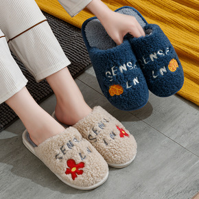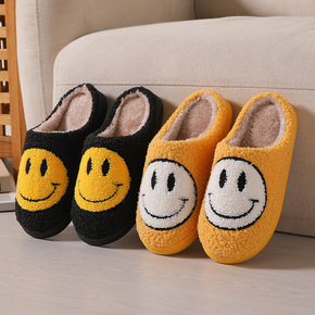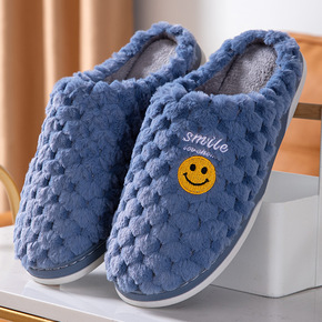 2022年新款冬季棉拖鞋男款笑脸刺绣舒适情侣毛毛绒...