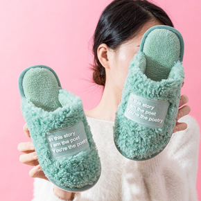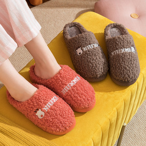 秋冬新款毛绒棉拖鞋情侣居家室内外棉拖鞋女家用保暖月...