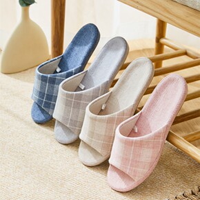 2021春新品日系格纹素色居家布艺盆底情侣四季棉麻...