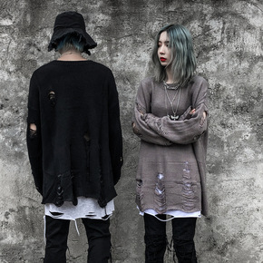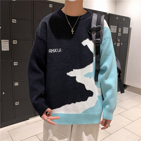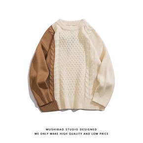 美式潮牌拼接毛衣日系原宿风小众设计感宽松慵懒风情侣...