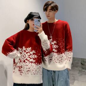 2021新款情侣装毛衣秋冬圣诞宽松潮流针织衫春季圆...