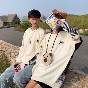 女装2021秋冬新款韩版假两件情侣套头设计感宽松百...