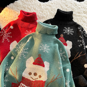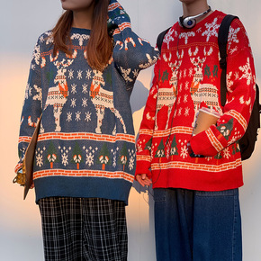 圣诞节针织毛衣女秋冬新款情侣装宽松百搭外穿显瘦长袖...