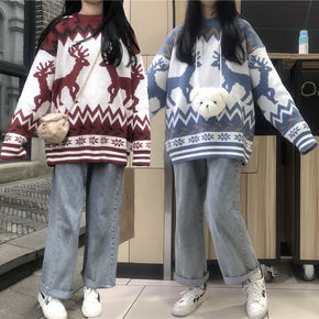 圣诞情侣毛衣女2021秋冬韩版潮慵懒风闺蜜装宽松外...