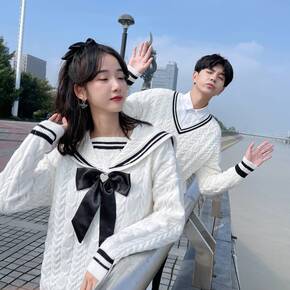 情侣装秋冬季学院风长袖毛衣男女学生韩版宽松毛线针织...