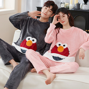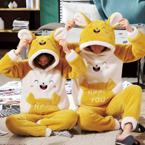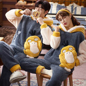 冬季可爱加厚法兰绒睡衣套装大码男女士珊瑚绒套头家居...