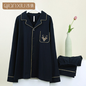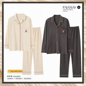 浅休男士纯棉睡衣开襟大码家居服套装情侣男女睡衣...