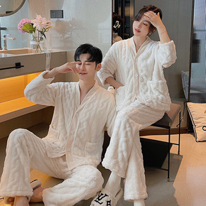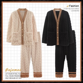 2套价 珊瑚绒情侣睡衣女秋冬加绒加厚法兰绒时尚韩版...