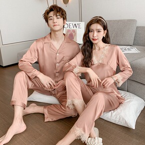 情侣睡衣女春秋款纯色男士睡衣优质100%纯棉长袖秋...