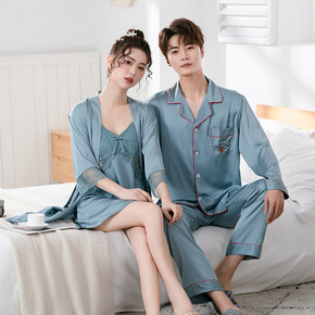 夏季冰丝睡衣女性感薄款男友风睡裙网红同款仿真丝绸衬...