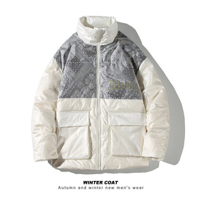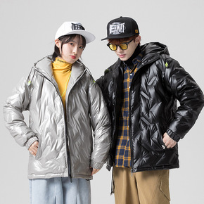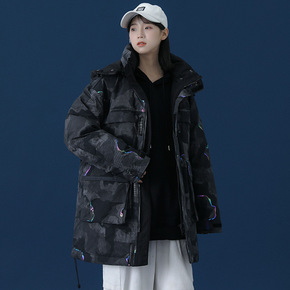 美式潮牌反光立领羽绒服男冬季白鸭绒情侣工装棉衣加厚...