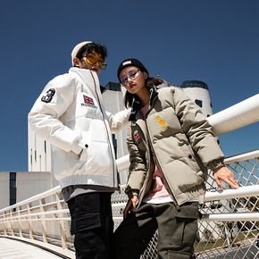 冬季美式潮牌男士羽绒服情侣轻薄白鸭绒立领棉衣韩版潮...