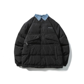 日系复古牛仔翻领羽绒服男冬季灰鸭绒情侣宽松工装棉衣...