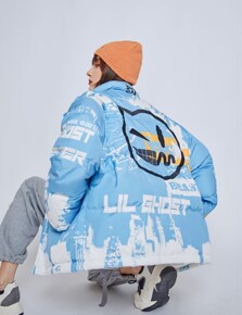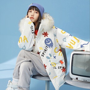 韩版2021年短款羽绒服女小恶魔男女同款潮牌印花加...