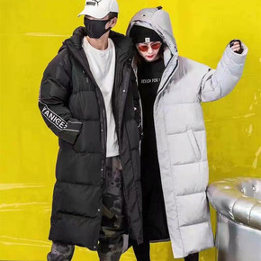 极限挑战情侣羽绒服女长款过膝加厚双面穿撞色杨超越同...