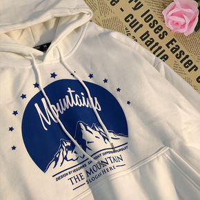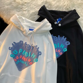 日系慵懒风潮流连帽宽松加厚字母爱心发泡印花女卫衣情...